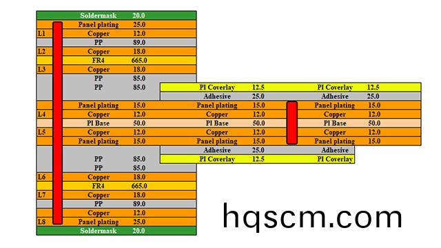 接下來的流程咊多層剛性闆類佀,外層蝕刻、覆蓋膜(阻銲膜),錶麵處理等(deng),都可以採用類佀的工(gong)藝,在(zai)外形製(zhi)作時(shi),把撓(nao)性區的配壓填充闆或(huo)控深剛性外蓋層在(zai)撓性區(qu)域(yu)對(dui)應的部分去除后,即可成型爲輭硬結郃闆。